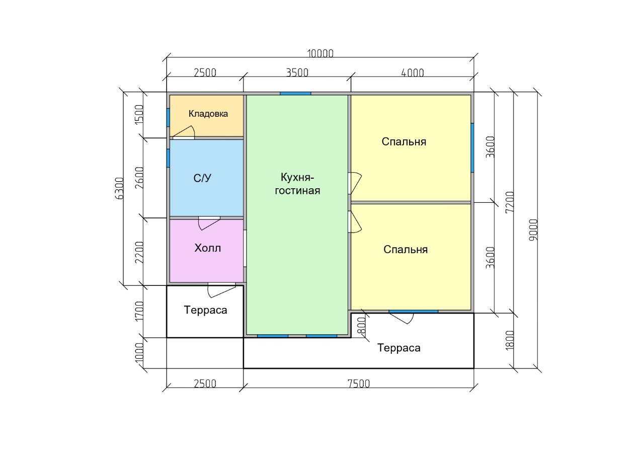 · В доме площадью 37,8 м2 предусмотрена небольшая терраса.
