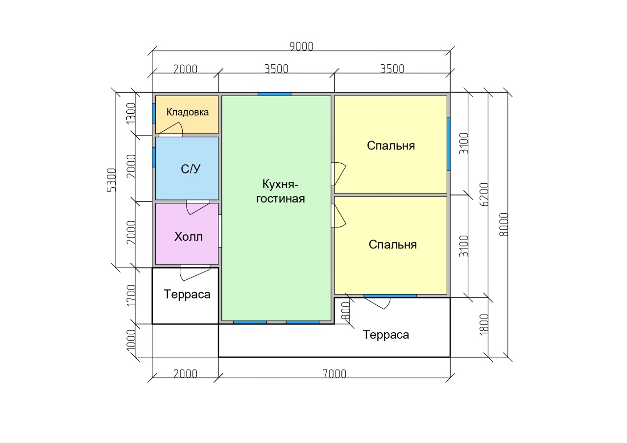 ·       В доме площадью 54 м2 предусмотрены две террасы.
